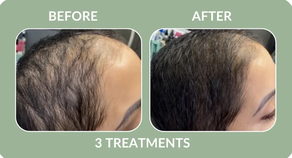 Hair regrowth is a process, and results vary by individual. A series of 6 treatments is typically recommended to support real follicle stimulation and hair density. After your initial series, maintenance is suggested once every 6-12 months depending on your hair goals and how your scalp responds.